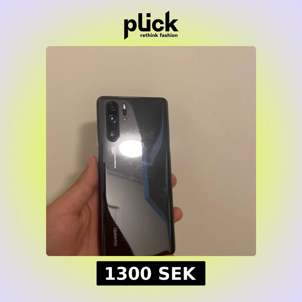 Huawei P30 Pro med Leica-kamera. Baksidan har repor och framskärmen är sprucken i hörnet. Telefonen har USB-C-port och flera kameralinser. Perfekt för dig som söker en prisvärd mobil med avancerad kamera, men kan acceptera kosmetiska defekter.