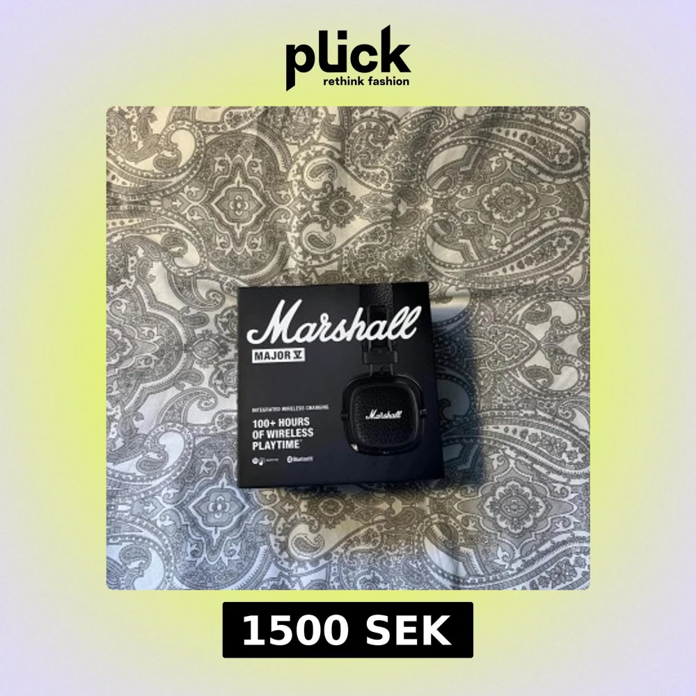 Marshall Major V är trådlösa on-ear hörlurar med över 100 timmars batteritid, Bluetooth, integrerad trådlös laddning och vikbar design. Ikonisk Marshall-ljudkvalitet och anpassningsbar knapp. Produkten och förpackningen är i nyskick utan synligt slitage.