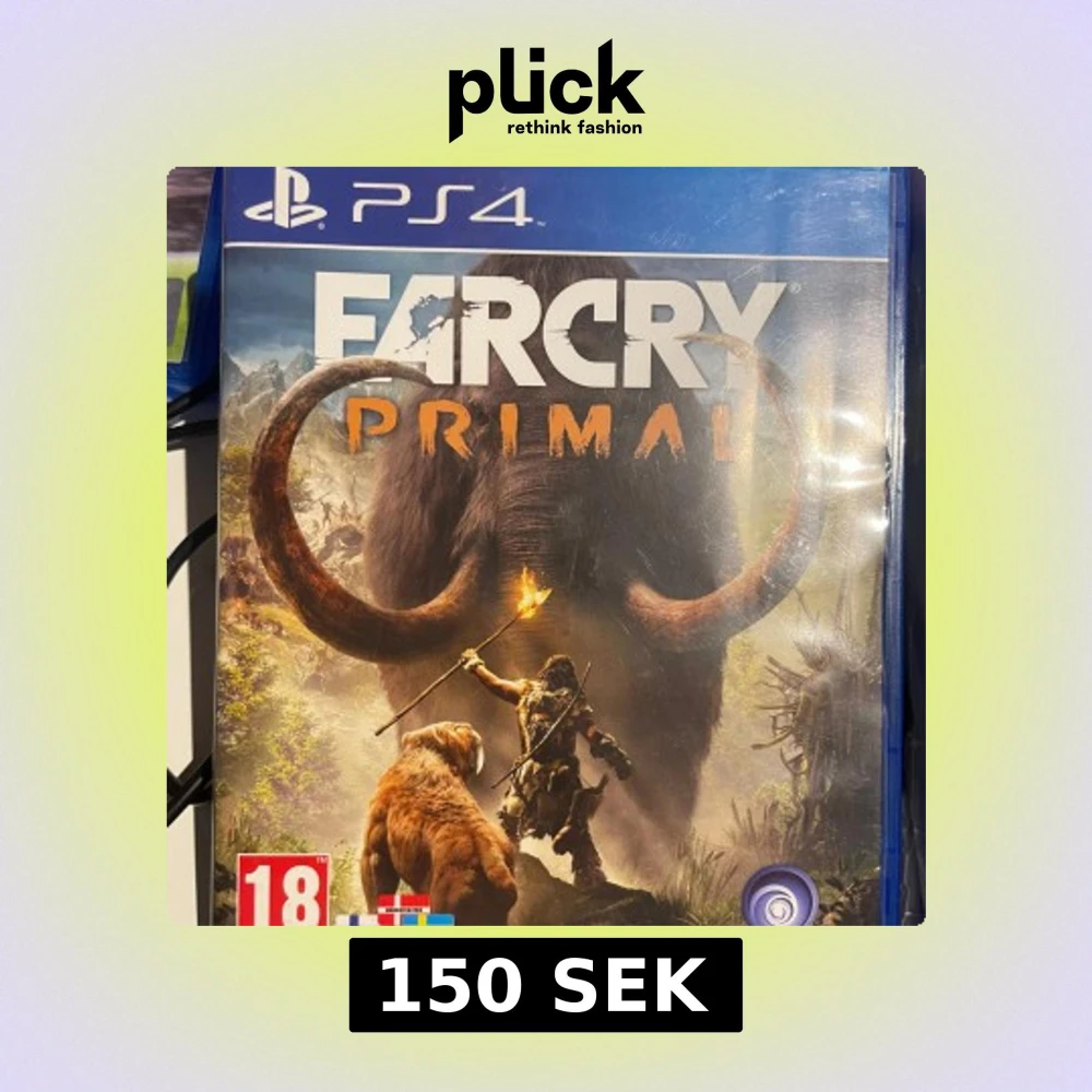Far Cry Primal till PlayStation 4. Upplev stenåldern i ett actionfyllt äventyr med öppenvärld, där du kämpar mot mäktiga bestar och fiender. Omslaget är i fint skick, inga synliga skador eller slitage.