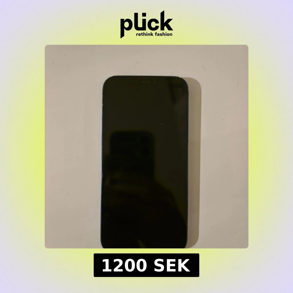 Säljer en blå iPhone 12. Telefonen har sprickor och repor på baksidan samt slitage på kanterna. Batterihälsan är 76% och behöver bytas för optimal prestanda. Skärmen ser hel ut. Perfekt för dig som vill ha en prisvärd iPhone med dubbla kameror.