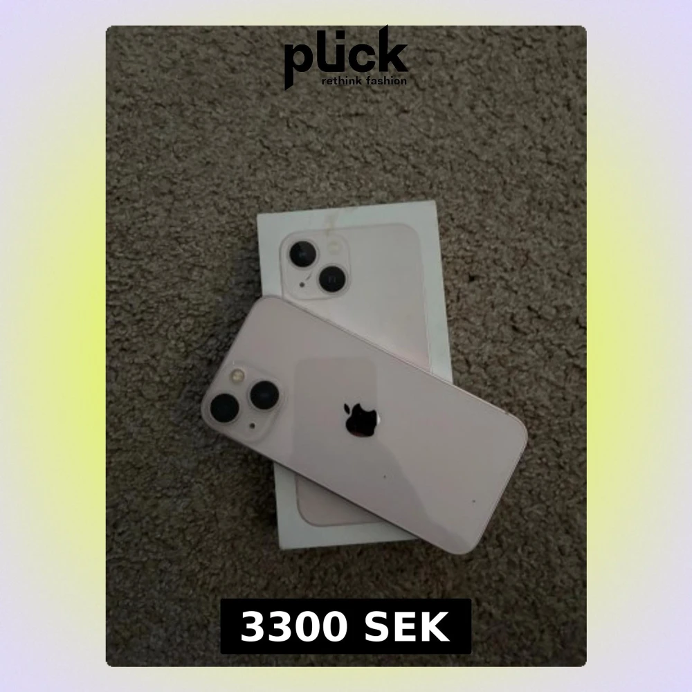 Snygg rosa iPhone 13 med originalkartong. Telefonen har dubbla kameror och ser ut att vara i gott skick utan synliga repor eller skador på skärm eller baksida. Perfekt för dig som vill ha en modern och kraftfull mobil med stilren design.