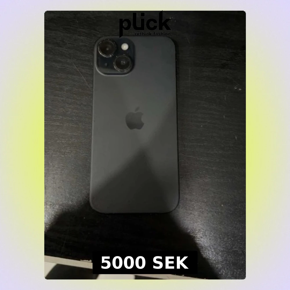 Snygg svart iPhone 15 med dubbla kameror och MagSafe-kompatibelt skal. Telefonen ser ut att vara i gott skick utan synliga repor eller skador. Perfekt för dig som vill ha en modern och kraftfull mobil med hög prestanda och stilren design.