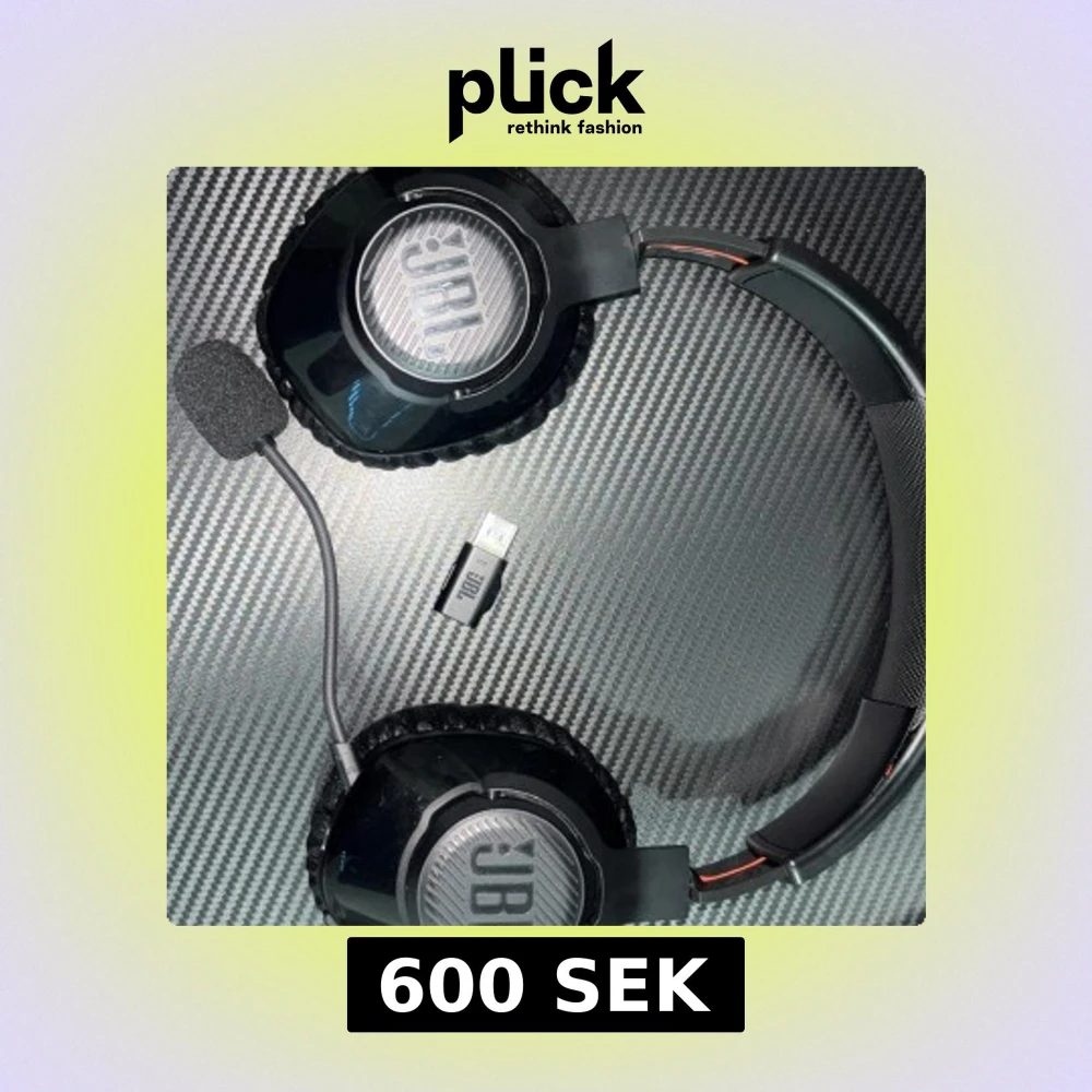 JBL Quantum 350 trådlöst gamingheadset med avtagbar mikrofon och USB-dongel. Over-ear design för komfort, tydlig mikrofon och kraftfullt ljud. Mindre kosmetiskt slitage syns på kåporna, men i gott skick och fullt fungerande.