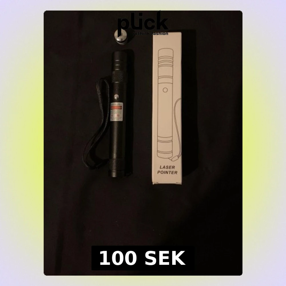 Kraftfull laserpekare med USB-laddning, levereras med originalförpackning och avtagbar lins. Laddas enkelt via USB och har indikator för laddning. Svart metallhölje, bärrem och kompakt design. Inga synliga defekter eller slitage, ser ut att vara i gott skick.