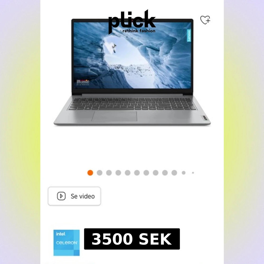 Lenovo laptop med Intel Celeron-processor, modern design och tunn ram. Perfekt för vardagsbruk, studier och surf. Tangentbord i fullstorlek och stor touchpad. Skärmen ger klara färger och bra bild. Inga synliga defekter eller slitage på bilderna. Nypris är 4499 och säljer nu den här för jag har en annan dator och använder aldrig den här. Kvitto fins såklart!