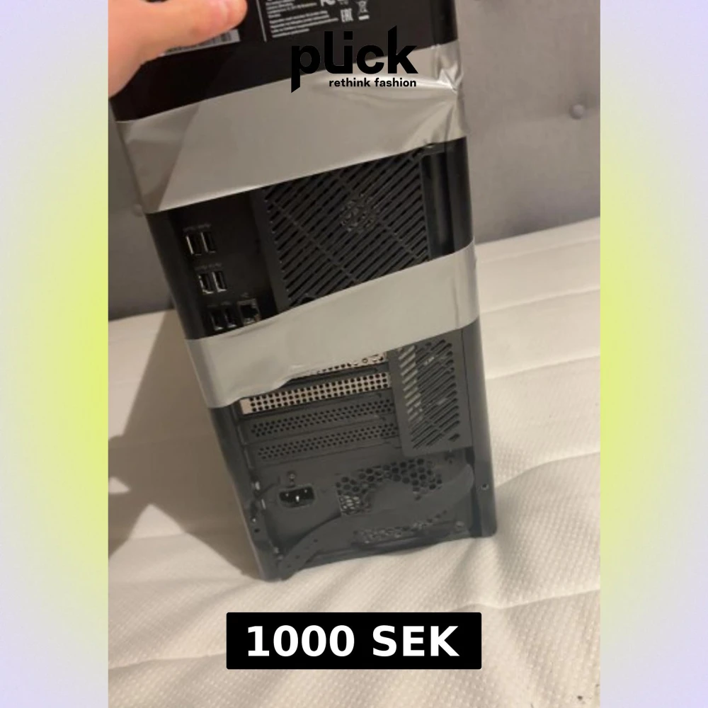Lenovo Legion stationär gamingdator med flera USB-portar och handtag för enkel transport. Chassit är lagat med silvertejp, vilket indikerar tidigare skador eller slitage. Fungerar men har tydliga kosmetiska defekter. Perfekt för dig som söker en prisvärd gamingdator., tejpen e bara där för skalet är lite löst, den är i mycket bra skick och knappt använd för dig som är nybörjare med datorer är denna jätte bra