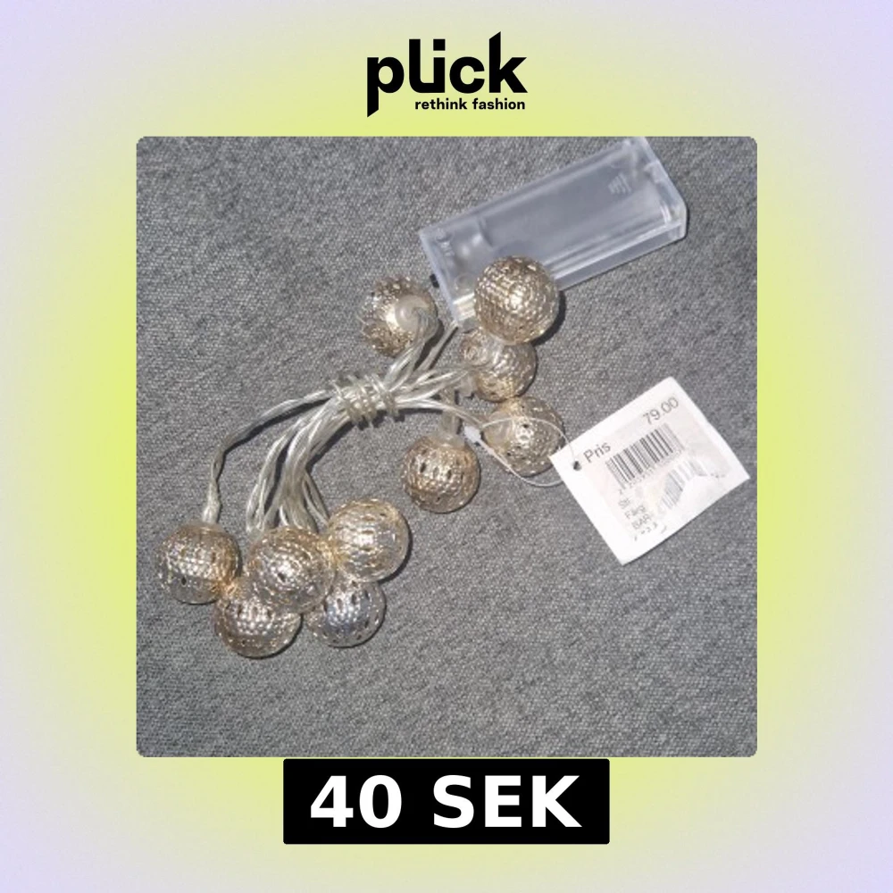Elegant batteridriven LED ljusslinga med dekorativa metallkulor i guld. Perfekt för att skapa mysig stämning i hemmet. Transparent batteribox för 2 AA-batterier. Produkten är i nyskick med prislapp kvar.