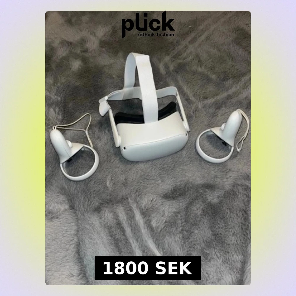 Säljer ett Oculus Quest 2 VR-headset i vitt med tillhörande handkontroller. Headsetet har justerbart band och mjuk vaddering för bekväm passform. Perfekt för dig som vill uppleva VR-spel och appar trådlöst. Materialet är plast och textil.