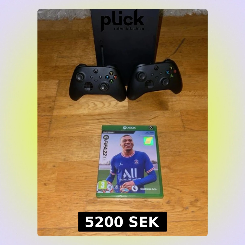 Xbox Series X i fint skick med två original handkontroller och spelet FIFA 22. Konsolen och tillbehör ser välvårdade ut, inga synliga större repor eller skador. Perfekt för gaming i 4K och HDR. Strömkabel och HDMI-kabel ingår.