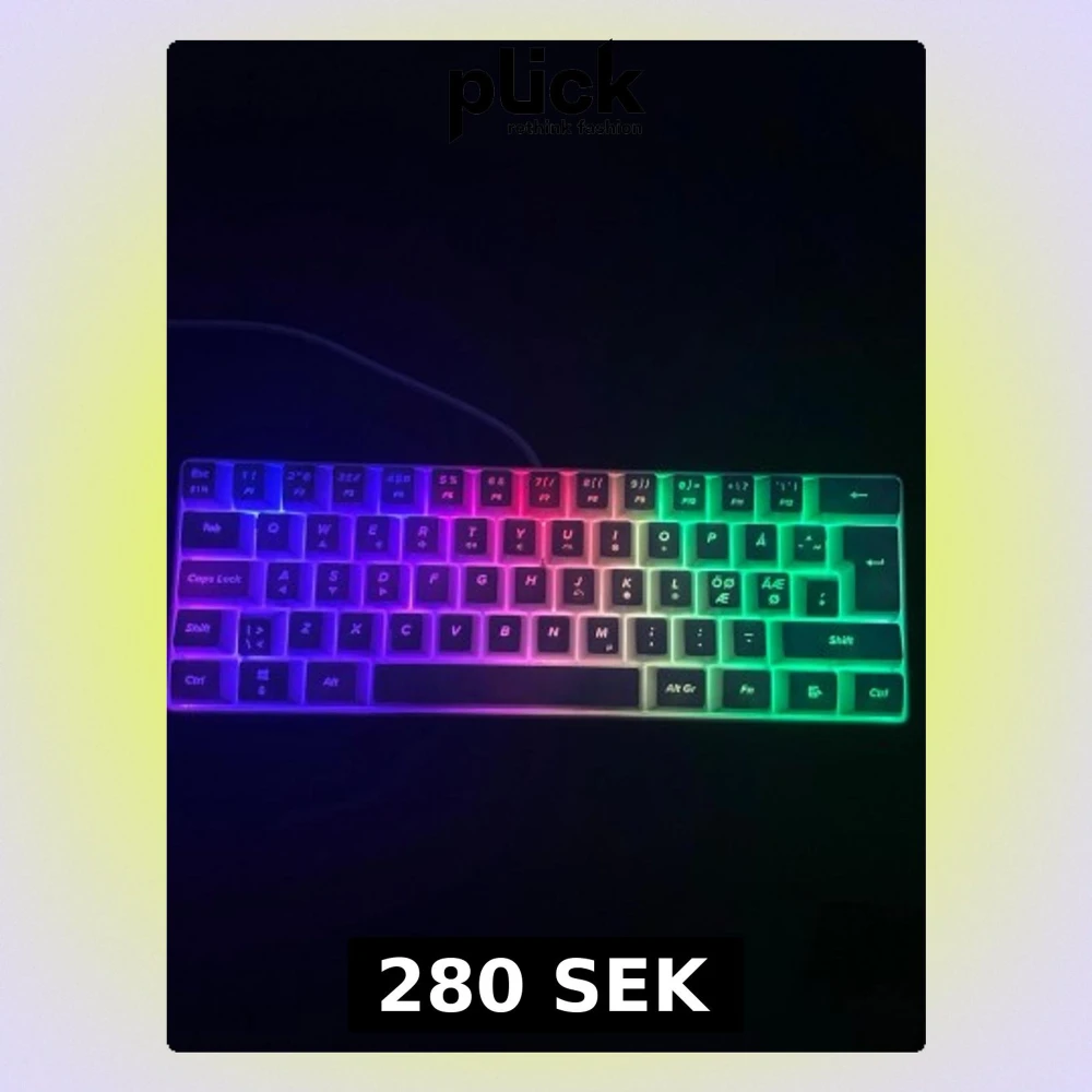 Kompakt MX5 Mini Keyboard med nordisk layout och RGB-belysning. Perfekt för gaming och arbete där platsen är begränsad. USB-anslutning, snygg design och i mycket gott skick utan synligt slitage. Flera färglägen för bakgrundsbelysning. Artikelnummer: 395213.