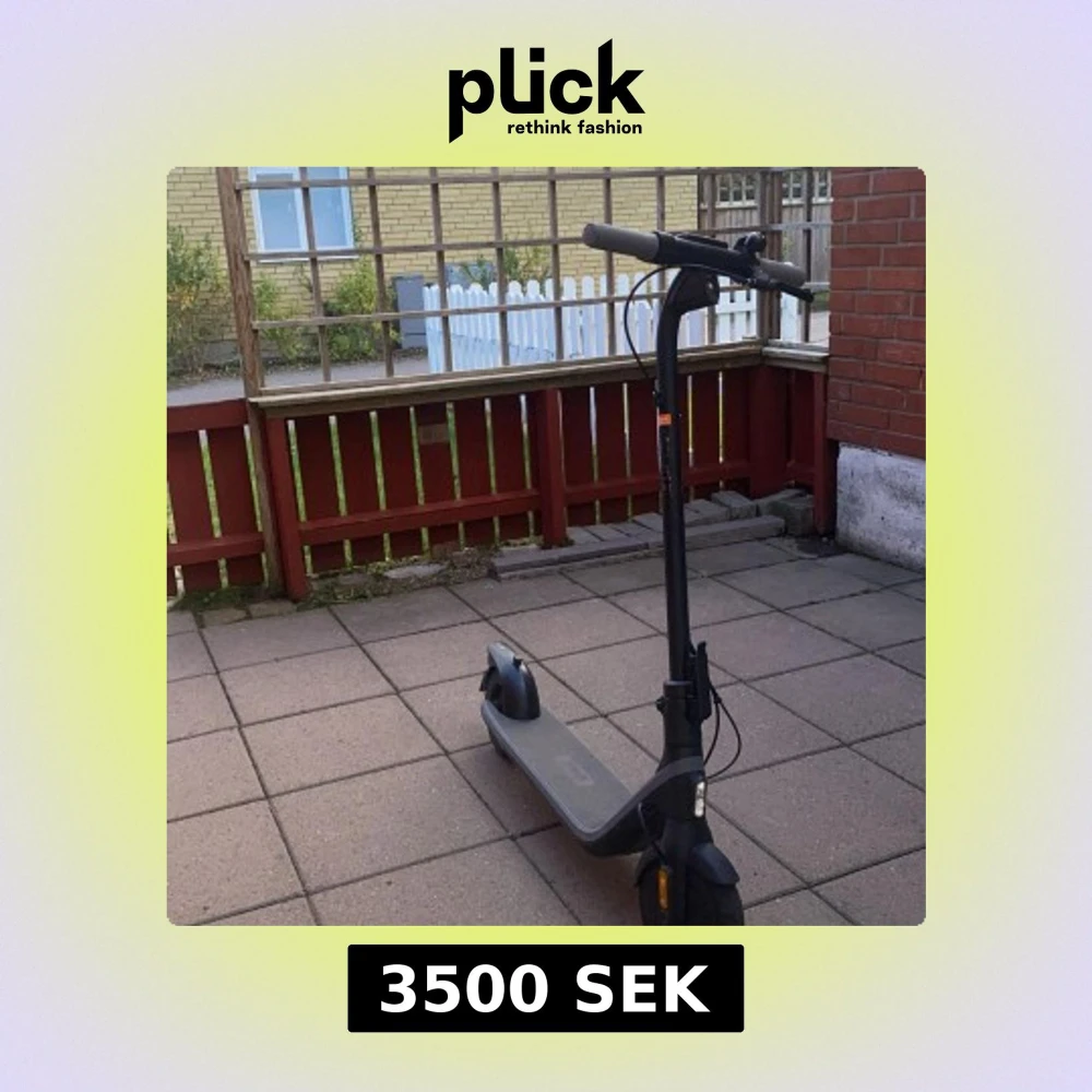 Ninebot elscooter i gott skick med digital display, ringklocka och robust ram. Batterinivå visas tydligt på styret. Några mindre repor och normalt slitage på fotplattan, men fungerar utmärkt. Perfekt för smidig och miljövänlig transport i stan.