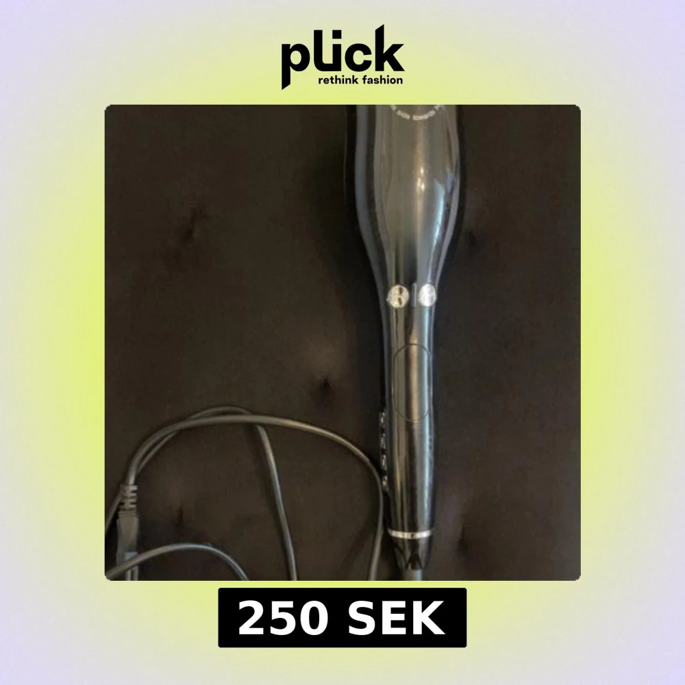 Automatisk elektron locktång i svart med sladd. Utrustad med knappar för inställningar och enkel hantering. Produkten är i gott skick utan synliga repor eller skador. Perfekt för snabb och smidig hårstyling hemma.