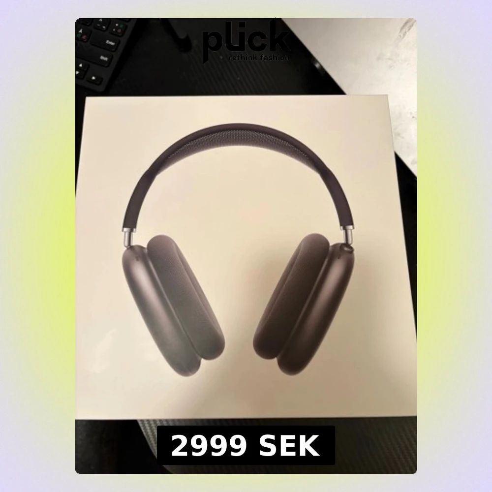 Apple AirPods Max i svart färg, over-ear hörlurar med aktiv brusreducering och hög ljudkvalitet. Levereras med originalförpackning och skyddsfodral. Hörlurarna är i gott skick med endast mindre tecken på användning på öronkuddarna.
