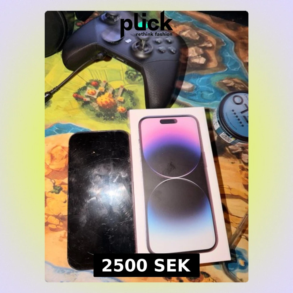 Säljer en iPhone 14 Pro. Telefonen har tydliga repor och slitage på skärmen och kanterna, samt en spricka vid kameran. Fungerar bra och levereras med originalkartong. Perfekt för dig som vill ha en kraftfull mobil till ett bättre pris trots kosmetiska defekter.