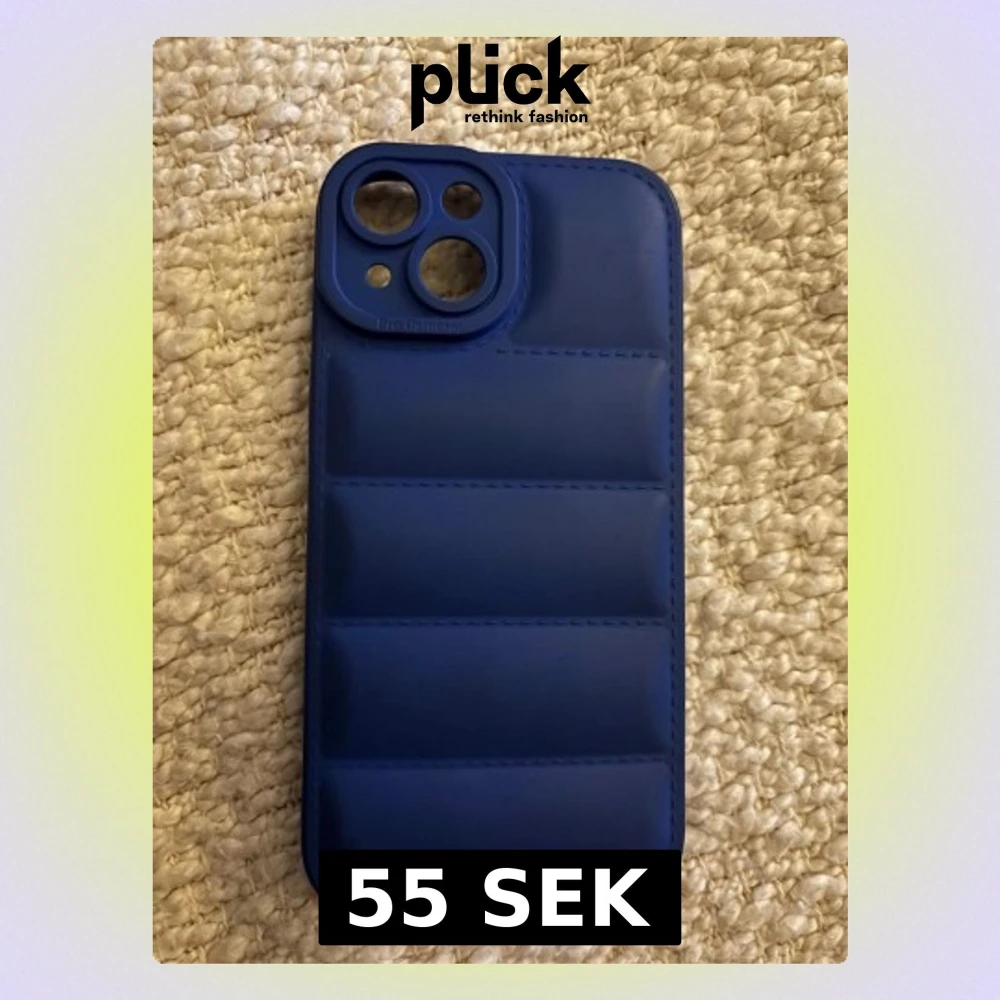 Snyggt blått mobilskal med vadderad design och räfflade sektioner. Skalet har stora utskärningar för kamerorna och är gjort i ett mjukt, flexibelt material som ger extra grepp och skydd. Perfekt för dig som vill ha en stilren och modern look på din iPhone.