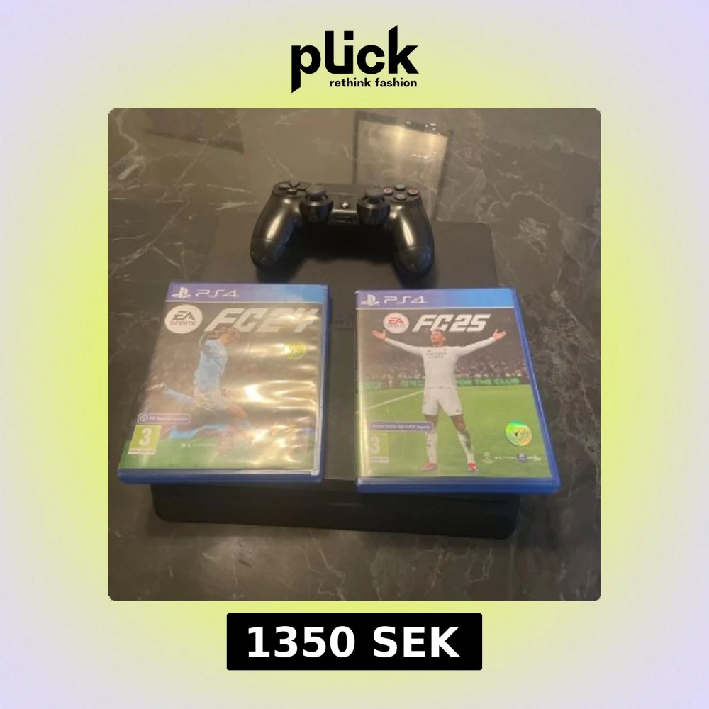 Snygg och välbevarad PlayStation 4 Slim med original DualShock 4-kontroll. Konsolen och handkontrollen är i gott skick med endast mindre ytliga repor. Perfekt för gaming och underhållning. Allt fungerar som det ska och är redo att användas direkt.