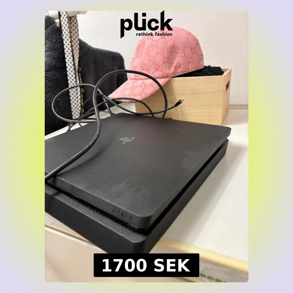 Sony PlayStation 4 Slim i svart färg. Den är i gott skick och fungerar som den ska. HDMI-kabel och strömkabel medföljer. Perfekt för gaming och underhållning hemma.