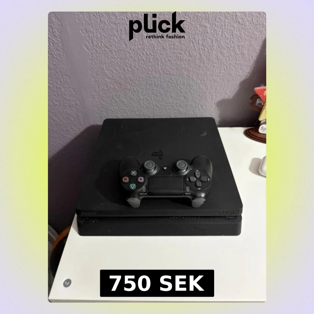 PS4 Slim i bra skick. Allt fungerar jättebra utan problem. Det enda som är trasigt är skivläsaren – den läser inte skivor. Konsolen fungerar annars perfekt för digitala spel. Strömkabel och en kontroll ingår.
