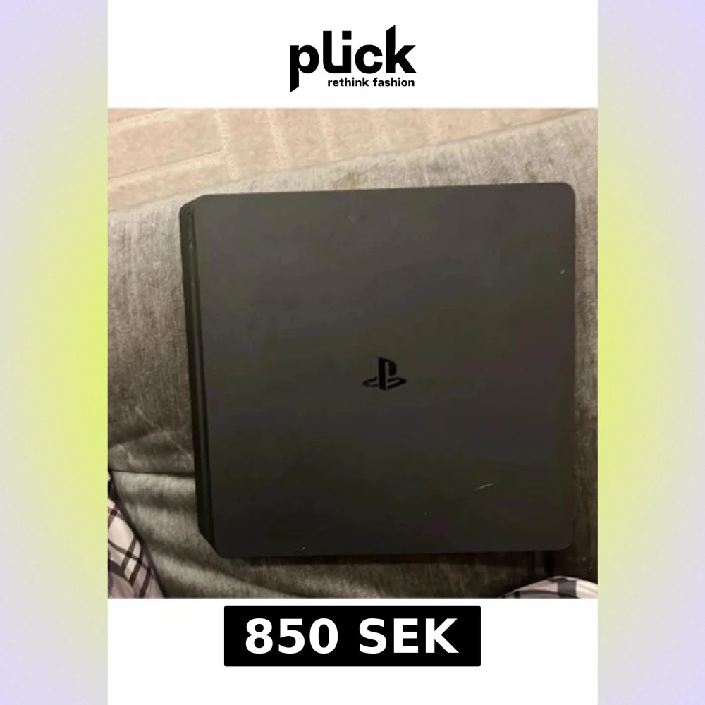 Säljer en PlayStation 4 Slim med original DualShock 4-kontroll. Konsolen är i gott skick med mindre ytliga repor, fullt fungerande. Perfekt för gaming och streaming. Kontrollen är trådlös och känns stabil. Inga större skador eller defekter synliga.