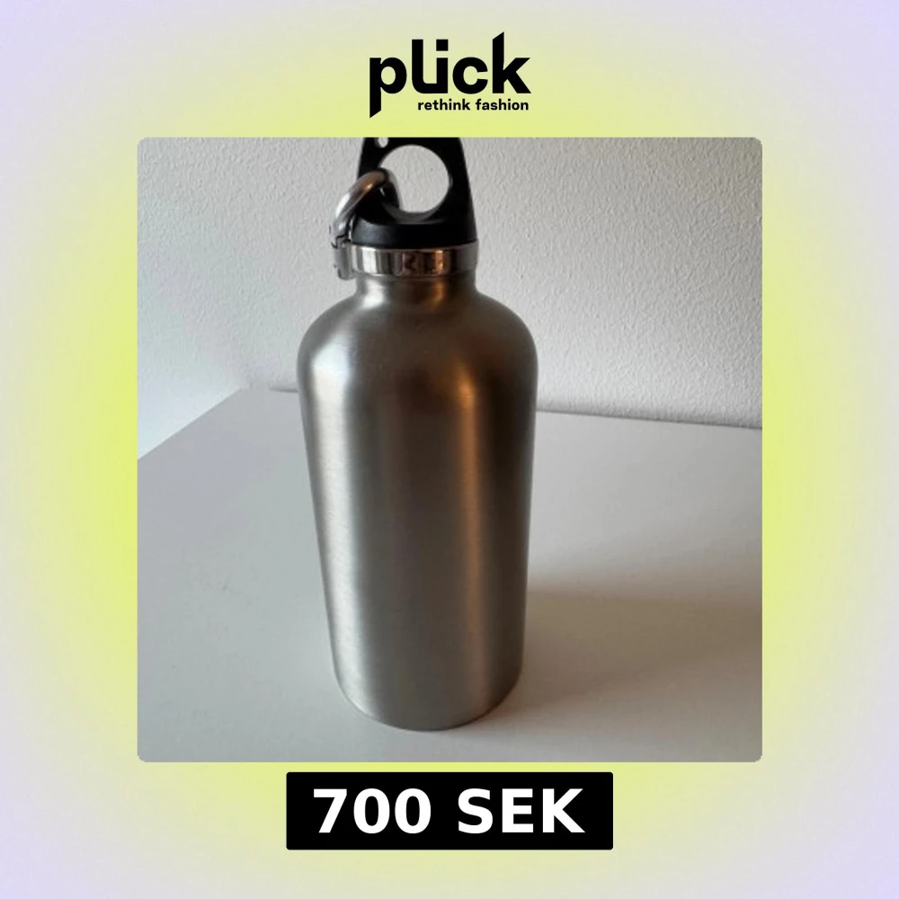 Elegant Prada termosflaska i rostfritt stål, 350 ml. Utrustad med karbinhake och svart plastlock. Flaskan är i mycket gott skick, perfekt för både varma och kalla drycker. Stilren design med diskret Prada-logga. Inga synliga repor eller skador.
