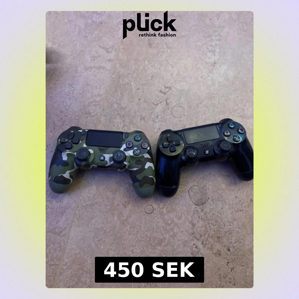 Två ps4 kontroller som ett billigt bundle. Den svarta har lite stick drift medans den andra är helt fel Felicia och funkar perfekt.