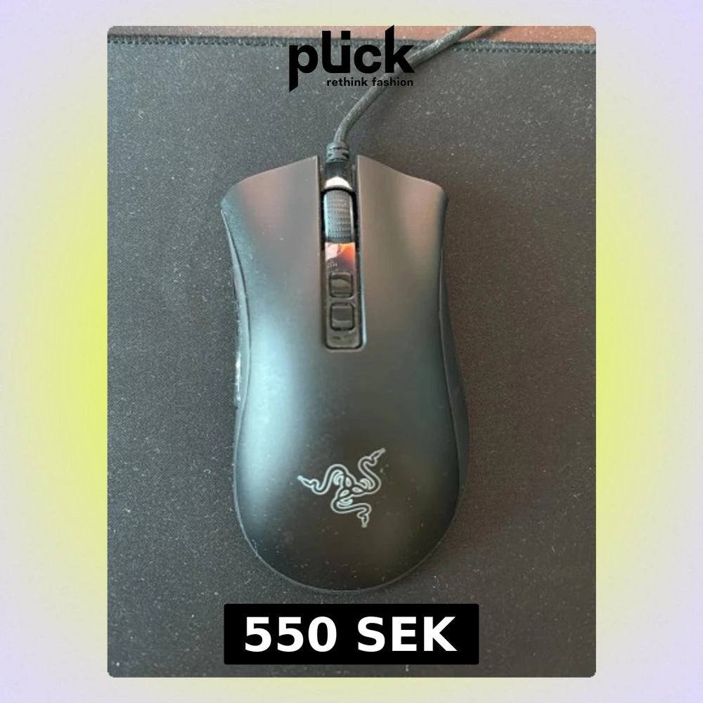Razer DeathAdder V2 gamingmus med Focus+ 20K DPI optisk sensor, programmerbara knappar och ergonomisk design. Kabelansluten modell i gott skick med mindre ytslitage. Perfekt för både gaming och arbete tack vare hög precision och komfort.