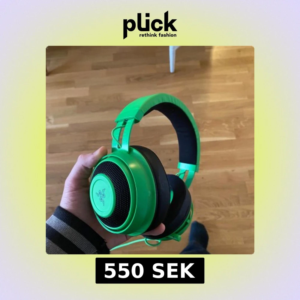 Razer Kraken v2 gamingheadset i ikonisk grön färg. Over-ear design med mjuka öronkuddar för komfort under långa spelsessioner. Kabelansluten modell, synligt i gott skick utan större slitage eller defekter. Perfekt för gaming med tydligt ljud och mikrofon. Endast använd ett fåtal gånger för spel och musik samt mixing i studio på dator