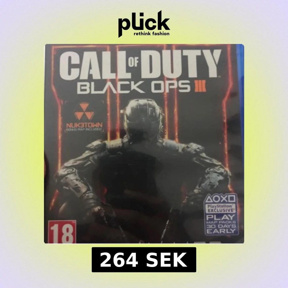 Call of Duty: Black Ops III till PlayStation med bonuskartan Nuk3town inkluderad. Omslaget och fodralet ser ut att vara i gott skick, ingen synlig skada. Spännande FPS med exklusiva PlayStation-förmåner och 18-årsgräns.k