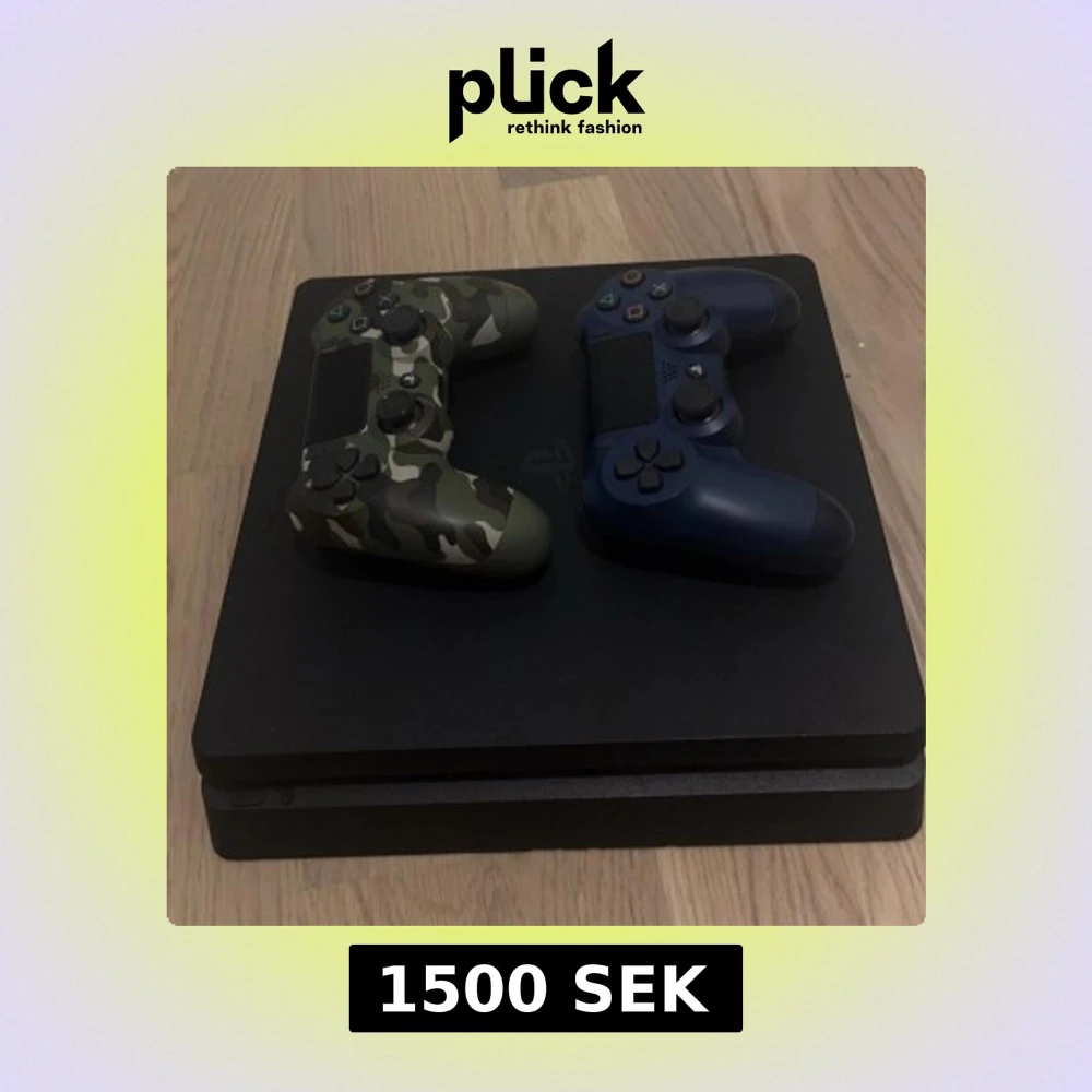 Säljer en PlayStation 4 Slim i fint skick med två DualShock 4 kontroller (en blå och en kamouflage). Konsolen och kontrollerna ser välvårdade ut utan synliga repor eller skador. Perfekt för spelkvällar och underhållning hemma. Playstationet är precis rengjort så den är jätte tyst ifrån sig.