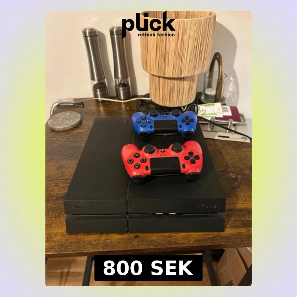 Säljer en PlayStation 4 (ps4) i fint skick med två DualShock 4 kontroller (en röd och en blå). Konsolen är välvårdad och fungerar utmärkt. Perfekt för spelkvällar och underhållning. Inga synliga större repor eller skador.