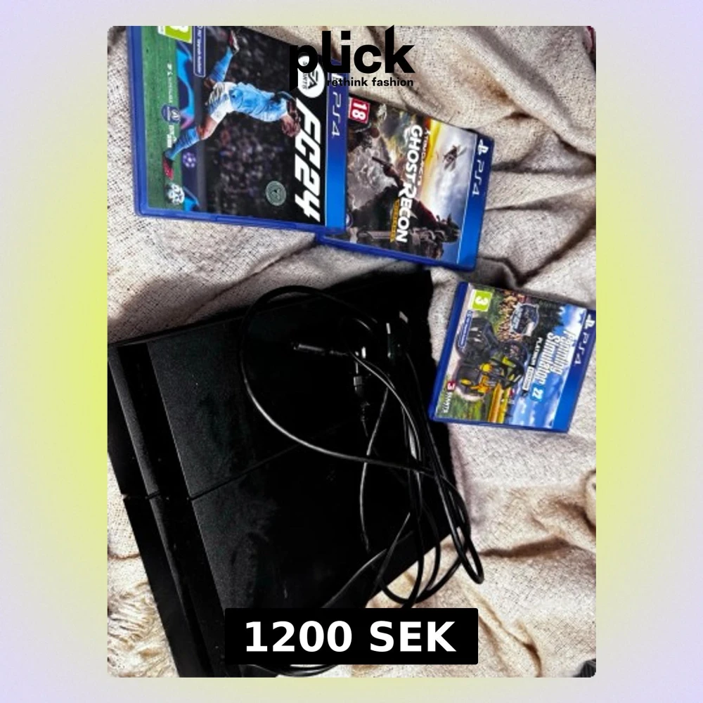 Säljer min PS4 på grund av att jag har fått en PS5. PS4an funkar bra och som den ska men utan kontroll eftersom min kontroll har gått sönder. GHOSTRECON spelet följer med och den funkar utan problem och inga skador på skivan samma sak med FC24 och Farming simulator platinum edition. Inga skador på skivorna och alla funkar. Går att sänka pris