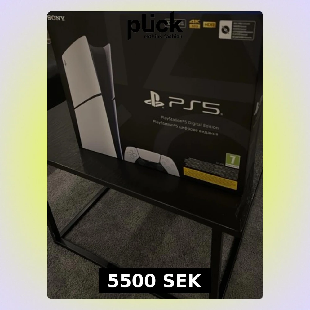 PlayStation 5 Digital Edition med 825 GB lagring. Konsolen har en futuristisk vit och svart design med rundade kanter och levereras med en trådlös DualSense-kontroll. Stöd för 4K HDR och digitala spel. Perfekt för gaming på nästa nivå. Fick den i jul, helt ny. Behöver inte den. Snabb affär. Orginal pris 6500. Oöppnad