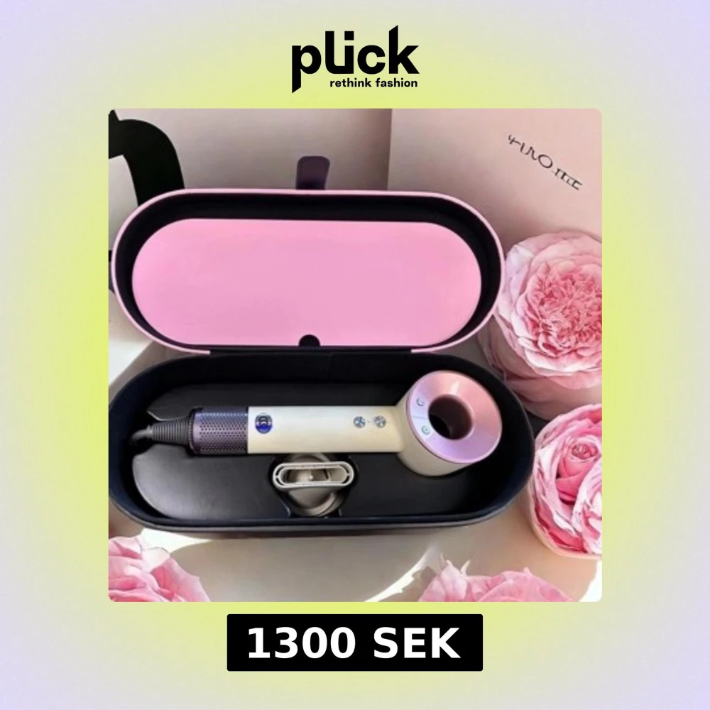 Elegant hårtork i creme och rosa med modern design, levereras med matchande förvaringsväska. Inga synliga defekter eller slitage, ser ut att vara i nyskick. Perfekt för både hemmabruk och resor. Inkluderar munstycke för styling.