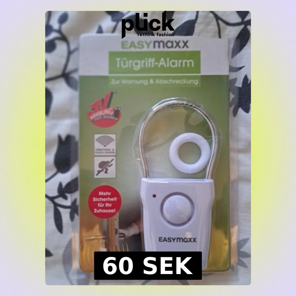 EASYmaxx dörrhandtagsalarm för att varna och avskräcka oönskade gäster. Rörelse runt dörrhandtaget utlöser ett högt alarm. Med vibrations- och beröringssensor. Två känslighetsnivåer kan ställas in. Trådlös batteridrift. Högt larmljud på 115 dB. Kan även användas på fönster. I nyskick och knappt använt. Vid övriga frågor skicka meddelande. Lämnar självklart god omdömen om köparen gör det. Kolla in gärna mina andra annonser! Ingen återköp eller retur om köparen går med på köpet!
