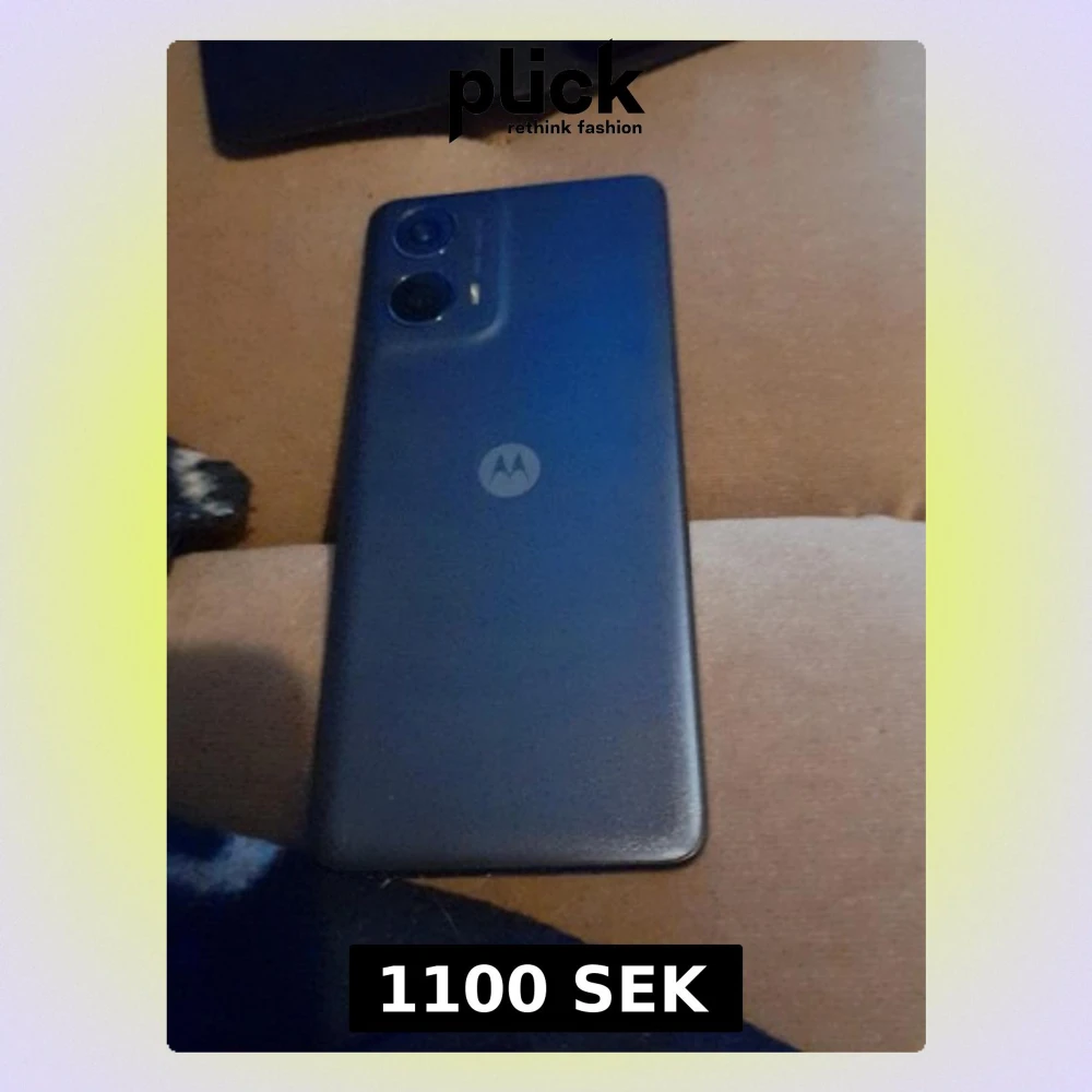 Motorola smartphone i blå färg med dubbla bakre kameror. Enheten ser ut att vara i gott skick utan synliga repor eller skador. Levereras med ett praktiskt plånboksfodral. Perfekt för dig som söker en pålitlig Android-telefon till ett bra pris.