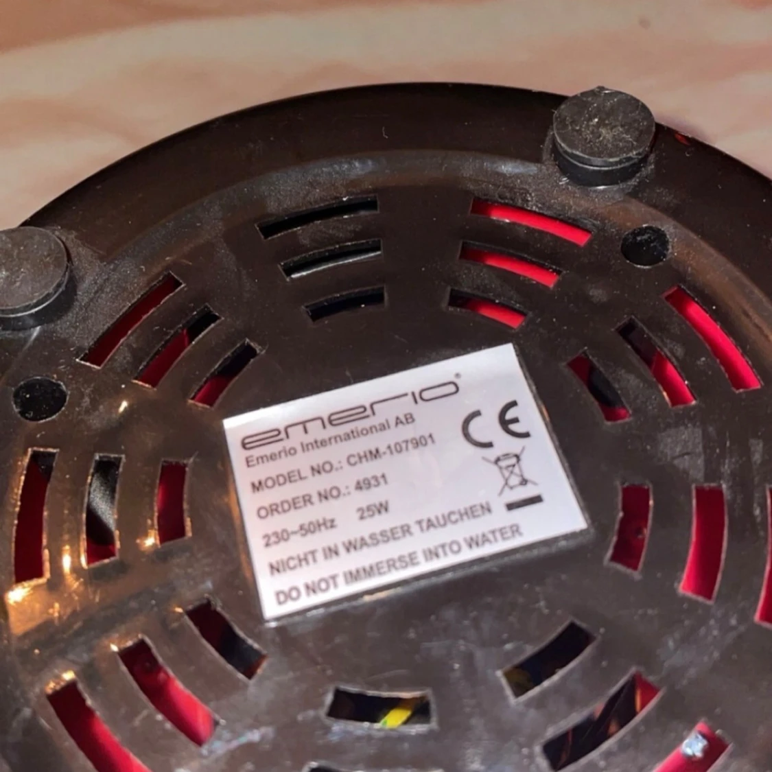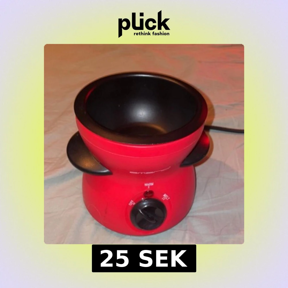 Emerio chokladfondue i röd färg, perfekt för dessert och fest. Utrustad med avtagbar skål, två värmelägen (Warm/Melt) och enkel kontroll. Skålen är i gott skick med mindre repor, och apparaten är fullt fungerande. Perfekt för smältning av choklad och servering.