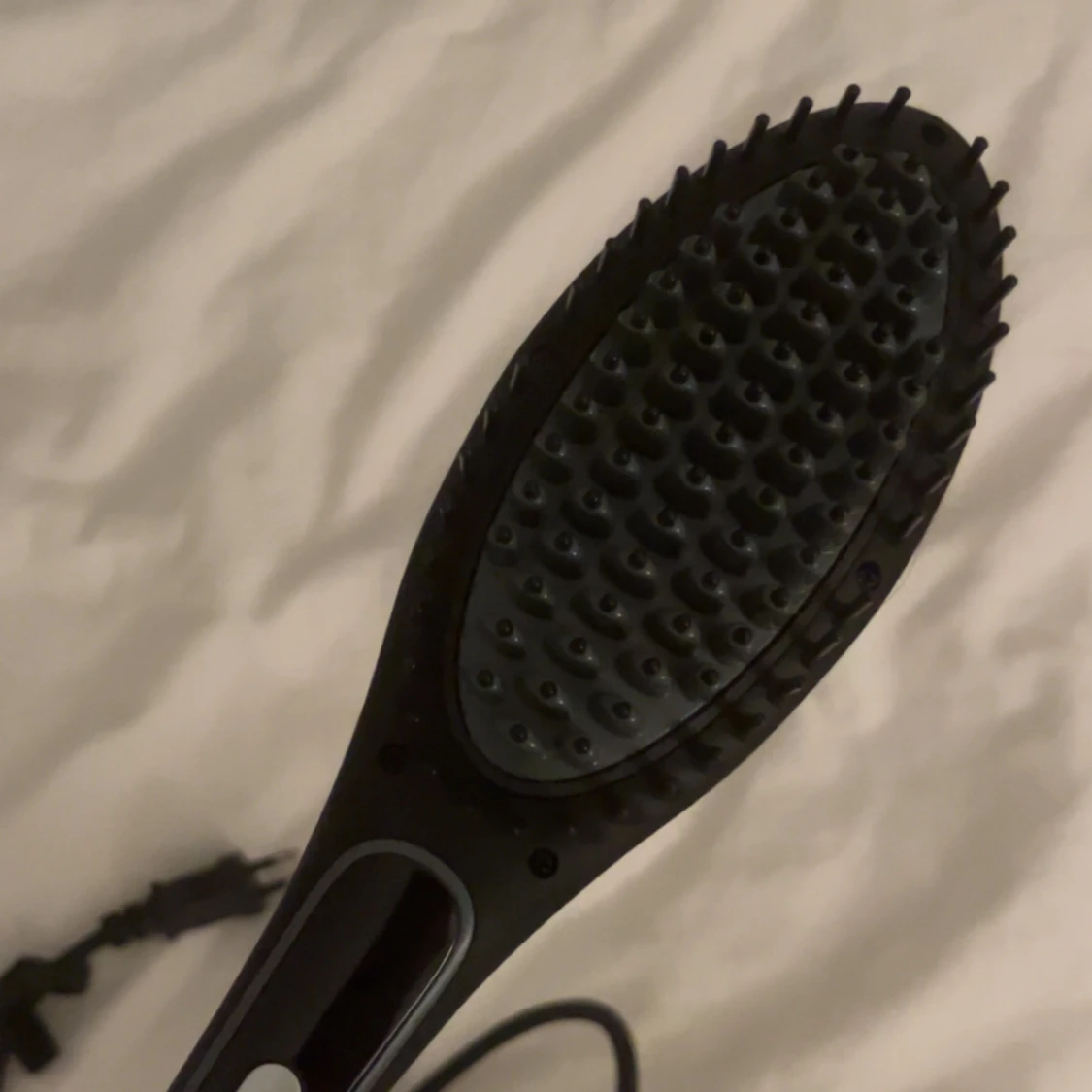 SilverCrest värmeborste med sladd, perfekt för att snabbt och enkelt styla håret. Borsten har flera värmeinställningar och är i gott skick utan synligt slitage. Enkel att använda med tydliga knappar och ergonomisk design.