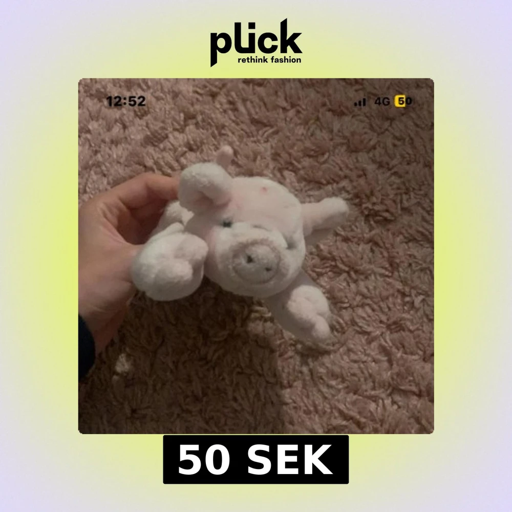 Söt och mjuk gosedjursgris från SoftToys. Ljusrosa plysch, klassisk design med broderade detaljer. Bra skick, inga synliga fläckar eller skador. Perfekt som present eller mysig vän till barnrummet.