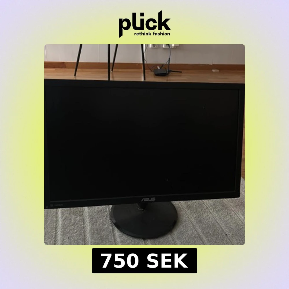 ASUS bildskärm med HDMI-ingång, stilren design och stabil rund fot. Skärmen ser ut att vara i gott skick utan synliga repor på panelen. Perfekt för arbete eller gaming. Inga större tecken på slitage, fungerar utmärkt som extra skärm.