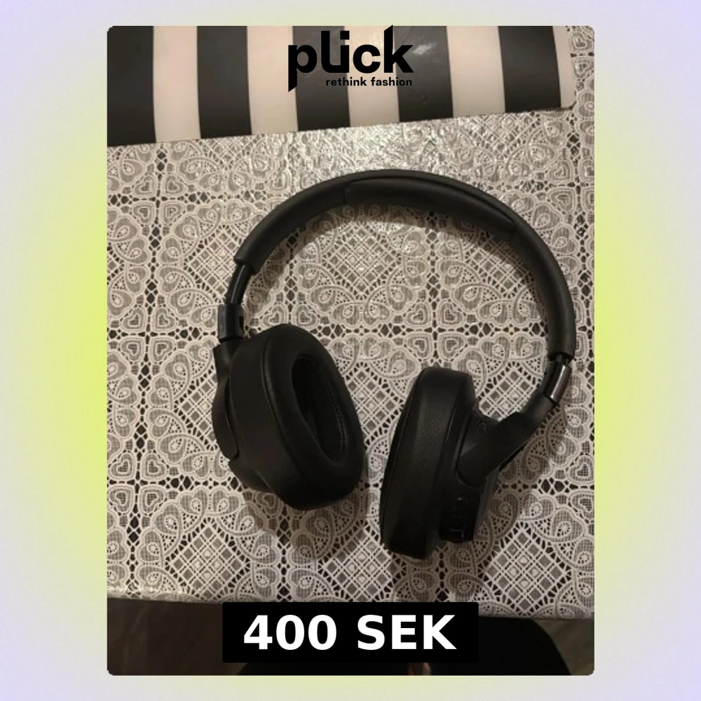 Snygga svarta JBL over-ear hörlurar med trådlös anslutning. Mjuka öronkuddar och justerbar bygel för hög komfort. Synliga knappar för enkel styrning. Hörlurarna är i gott skick utan synligt slitage. Perfekta för musik, film och samtal.