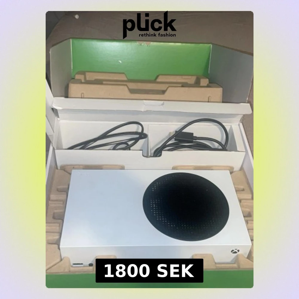 Xbox Series S i originalkartong med tillhörande kablar och vit trådlös handkontroll. Konsolen och kontrollen ser ut att vara i gott skick med endast mindre tecken på användning. Perfekt för dig som vill spela de senaste spelen.