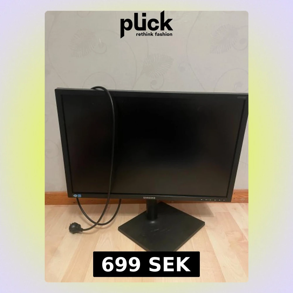 Samsung S24C650 24-tums LED-skärm med roterbar fot. Skärmen har tydliga knappar och medföljande strömkabel. Skicket är bra med mindre ytliga repor på foten, inga synliga skador på skärmen. Perfekt för både arbete och gaming.