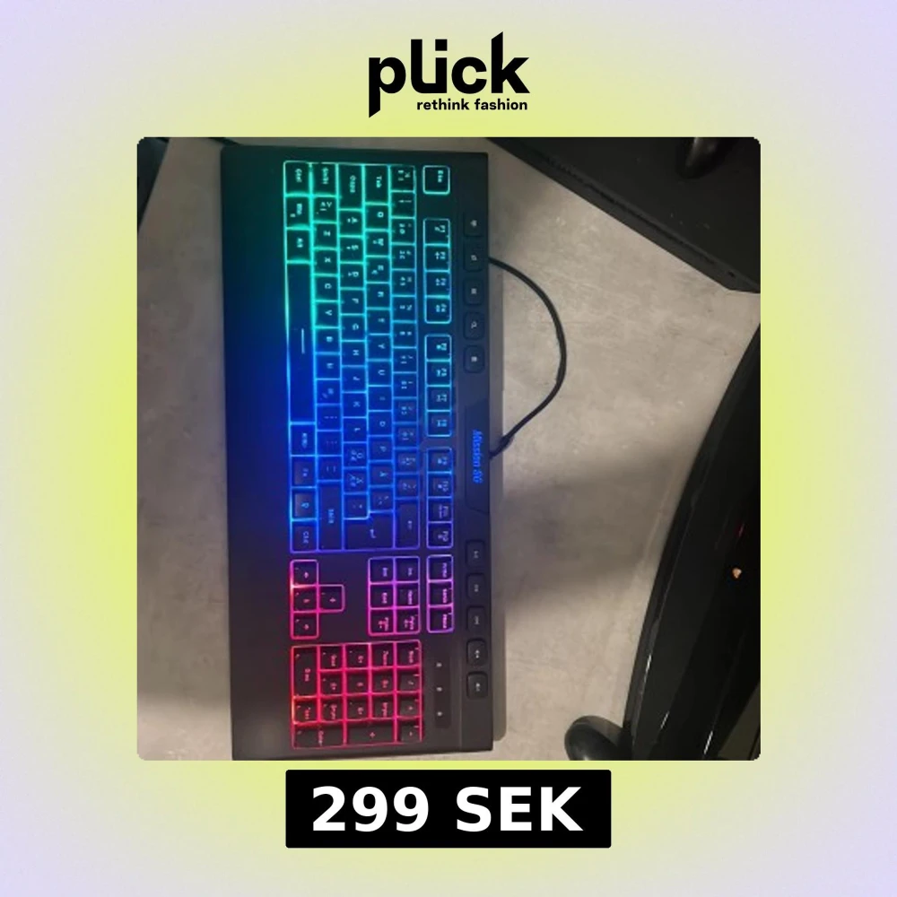 Snygg RGB-belyst gamingtangentbord från Mission SG med nordisk layout. Flera färglägen, mediaknappar och numeriskt tangentbord. USB-anslutning. Tangenter och belysning i fint skick, inga synliga defekter eller slitage. Perfekt för gaming och kontor.