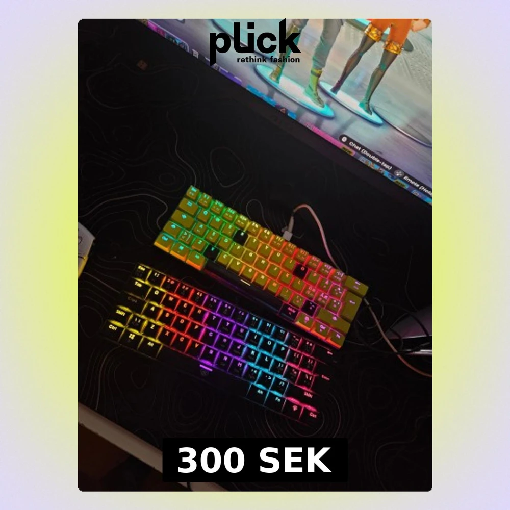 Snyggt och kompakt RGB gaming tangentbord med färgglad bakgrundsbelysning. Perfekt för spel och arbete, med tydliga och responsiva tangenter. Tangentbordet är i gott skick utan synligt slitage eller defekter. USB-anslutning för enkel installation.