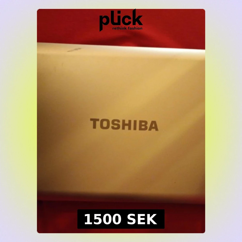 Toshiba laptop i silverfärg med synligt varumärke på locket. Perfekt för studier, arbete eller vardagsbruk. Modell och specifikationer ej synliga på bilden.