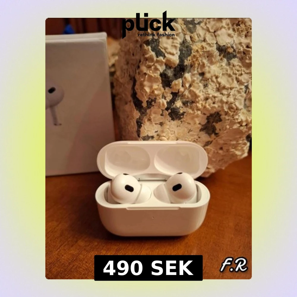 Apple AirPods Pro i mycket fint skick, komplett med originalförpackning och laddningskabel. Trådlösa hörlurar med aktiv brusreducering och laddningsetui. Inga synliga repor eller skador, fungerar utmärkt. Perfekt för musik, samtal och träning.