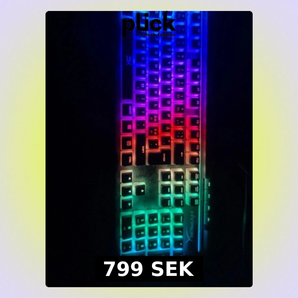 Snygg HyperX gamingtangentbord med RGB-belysning och numerisk del. Flera färglägen, mekaniska tangenter och robust metallram. Något smutsigt men fullt fungerande, perfekt för gaming och produktivitet.