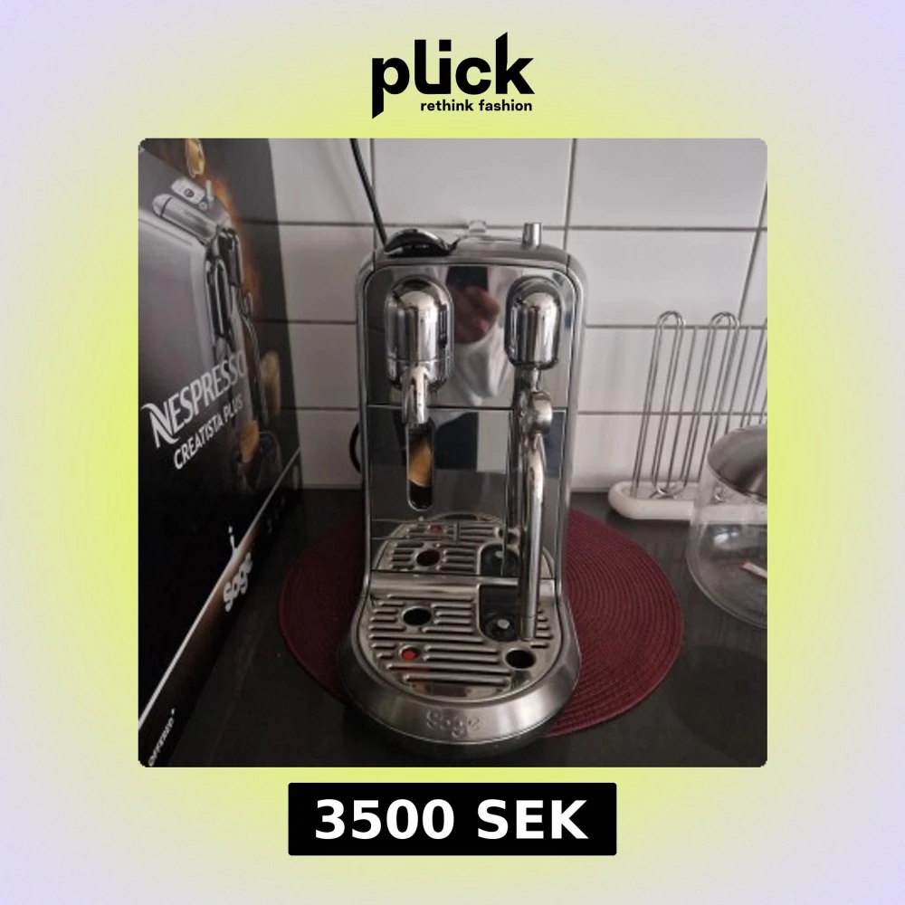 Nespresso Creatista Plus från Sage, en elegant och avancerad kapselmaskin med 19 bars tryck, snabb uppvärmning och automatisk mjölkskummare. Maskinen är i mycket gott skick, med blank finish och inga synliga defekter. Perfekt för kaffeälskare som vill ha cafékvalitet hemma.