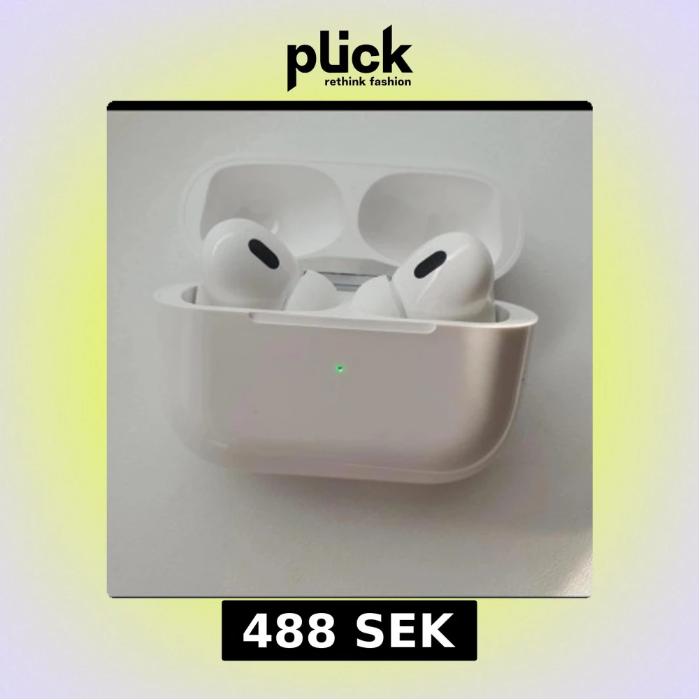 Snygga och populära AirPods Pro från Apple med aktiv brusreducering och trådlös laddning. Levereras med originalförpackning och laddningskabel. Skicket ser mycket bra ut utan synligt slitage eller repor. Perfekt för musik, samtal och träning.