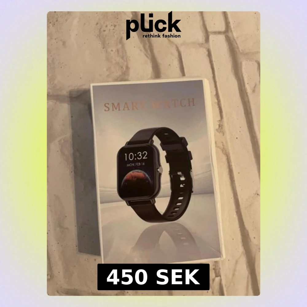 Ny smartklocka i originalförpackning. Inkluderar svart silikonarmband, extra metallarmband och laddare. Klockan har fyrkantig display och flera smarta funktioner. Perfekt för dig som vill hålla koll på hälsa och notiser. Produkten ser oanvänd ut och levereras komplett.